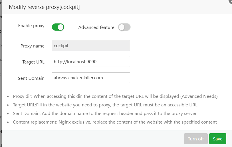 markvn aaP_strong it not clearly with me. what value I need to put in ? if i want domain -> ip:port Proxy name Proxy dir Target URL Sent Domain
