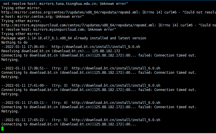 1, can not connect to our official installation node resulting in installation failure, as shown in the figure