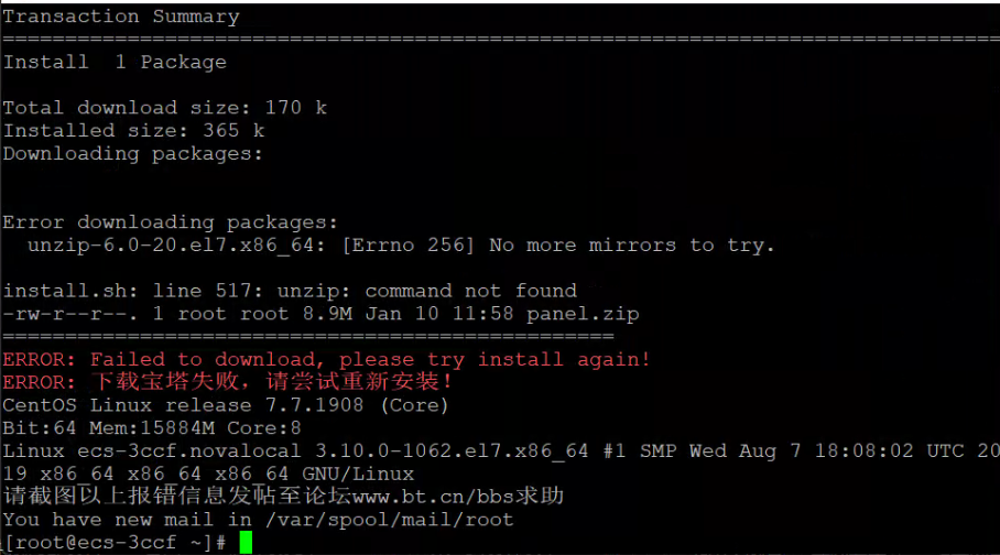 Panel installation process due to the operating system environment, image, server vendors, will lead to some installation failure, the following summary of some common errors and attached solutions. If there are no problems below did not solve to your installation problems, please follow the post below in the following format.