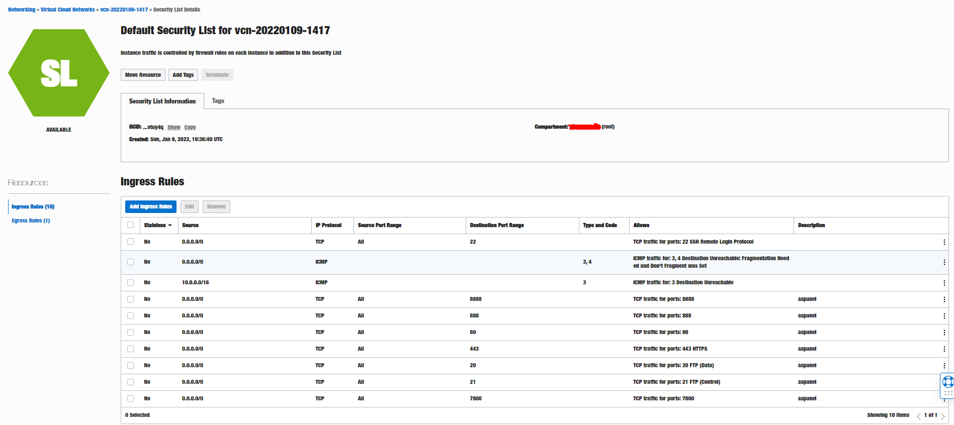 aaP_jose_m Hi, please, I have installed aapanel in Ubuntu 20.4 in a VPS and the installation has been correct. I have opened all the ports in ingress rules, however I cannot access with my IP or domain (ERR_CONNECTION_TIMED_OUT) Can someone help me? Thanks in advance