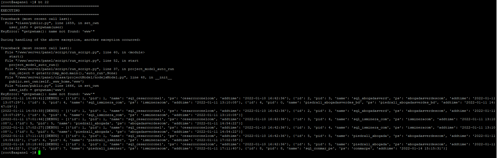 aaPanel_thisyear cesarcoronel Hello, can the aapanel port be connected normally? If you can connect normally, the server command line executes the following command screenshot to have a look bt 22