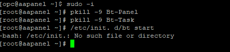 aaPanel_thisyear cesarcoronel Hello, the server command line executes the following commands pkill -9 Bt-Panel pkill -9 Bt-Task Then try the following command /etc/init. d/bt start