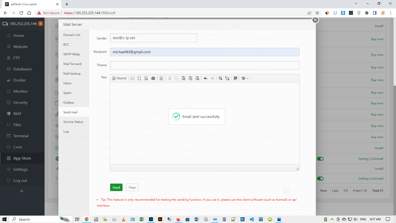 aaP_vipegmarketing aaPanel_Kern although the mail server works perfectly on aa panel .. i got this bad message ! can you advice how to solve ?