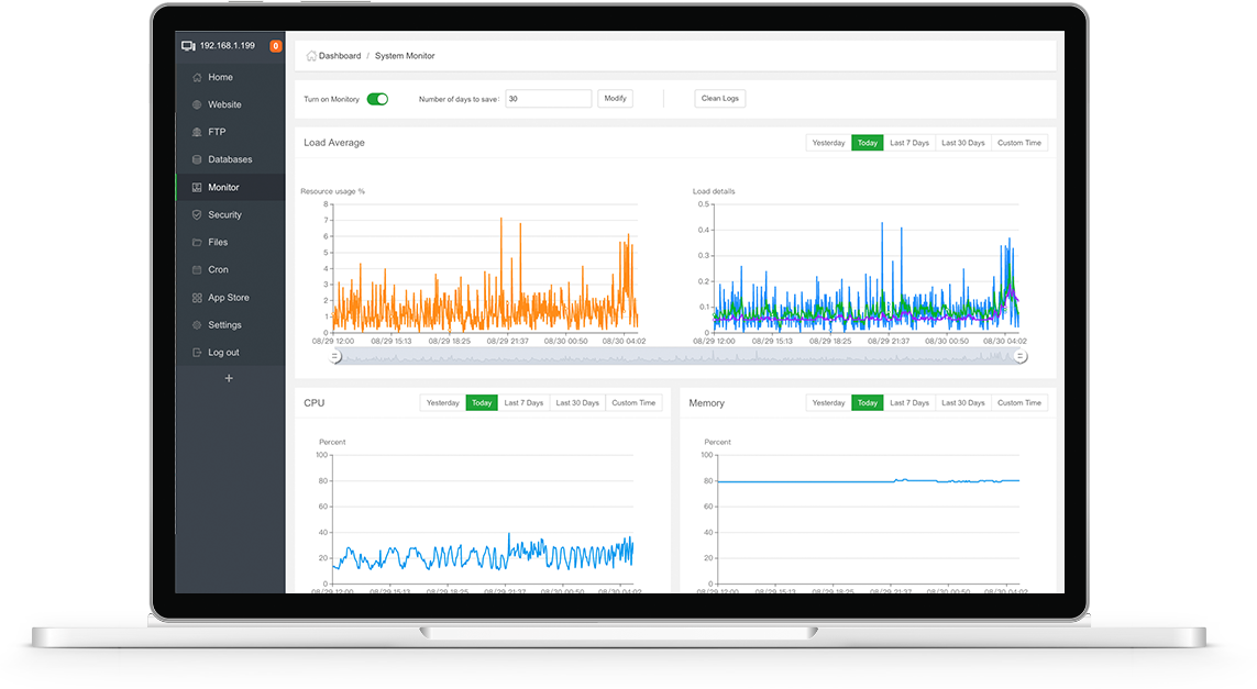 aaPanel, a simple but powerful control panel, can manage the web server through web-base GUI(Graphical User Interface).